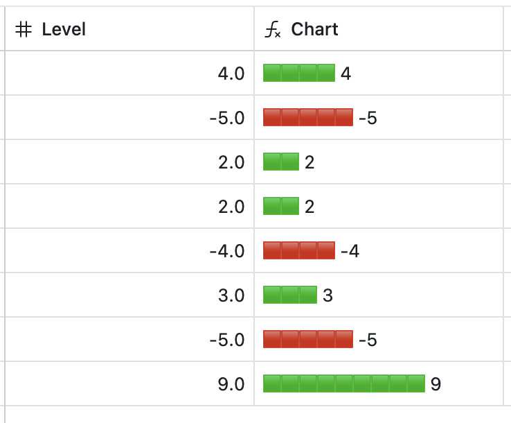 IF(Level>0,REPT("🟩",Level),REPT("🟥",ABS(Level)))&" "&Level